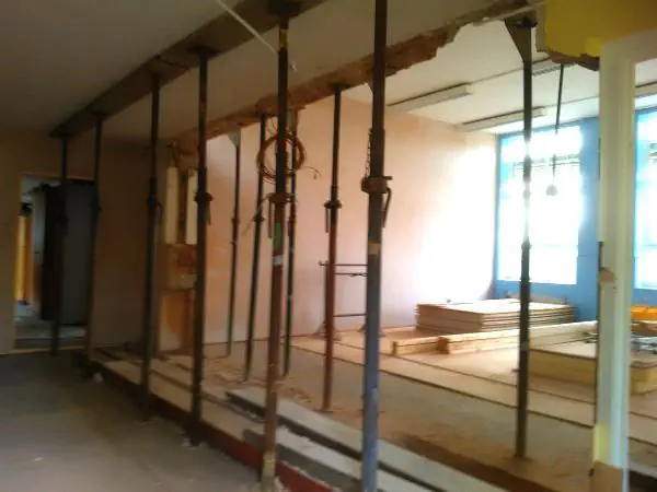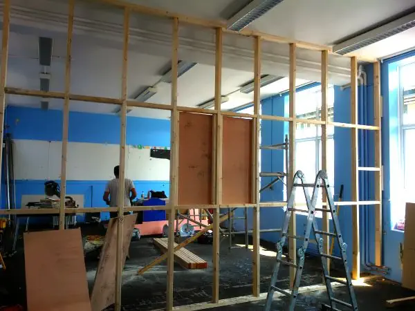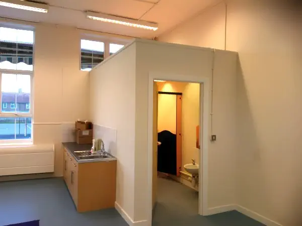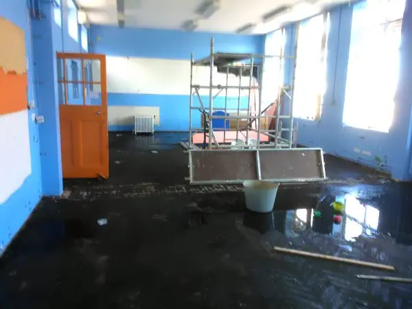 The brief of the work was to remove a large W.C area along with a structural corridor wall. The formation of stud work would split this to create 2 new classrooms, one having a small W.C area.